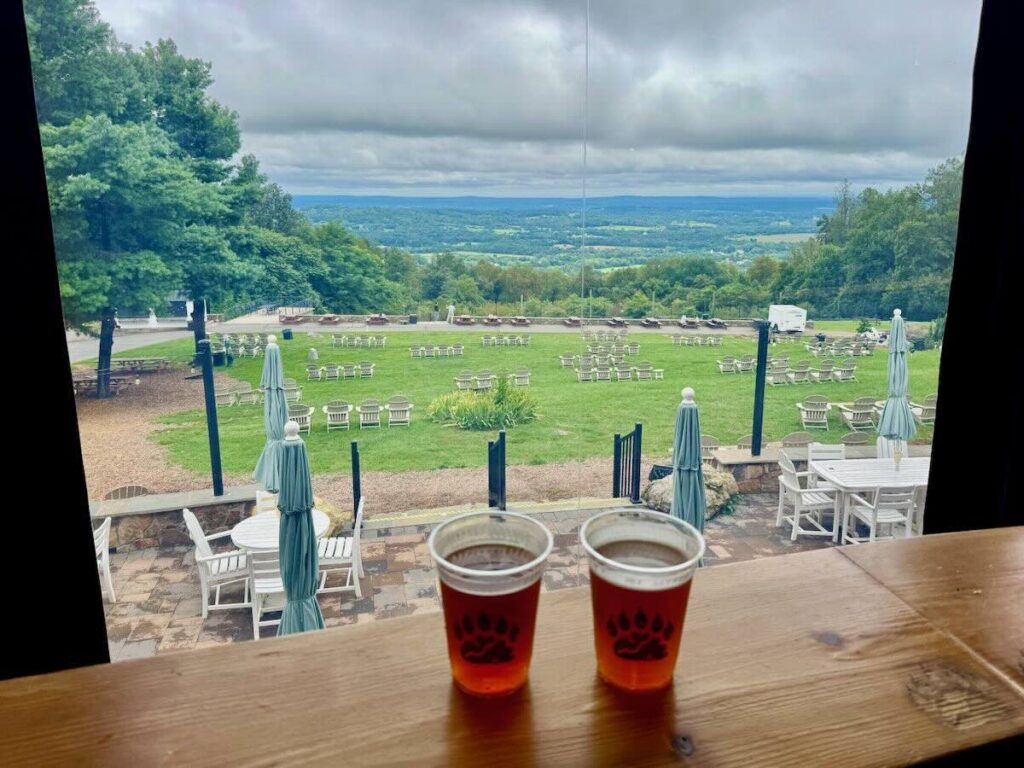 - Bear Chase Brewing is another great brewery with a fantastic view and it’s even closer to the Bears Den Overlook. There is a lot of seating indoors and out so this is a good choice in any weather.